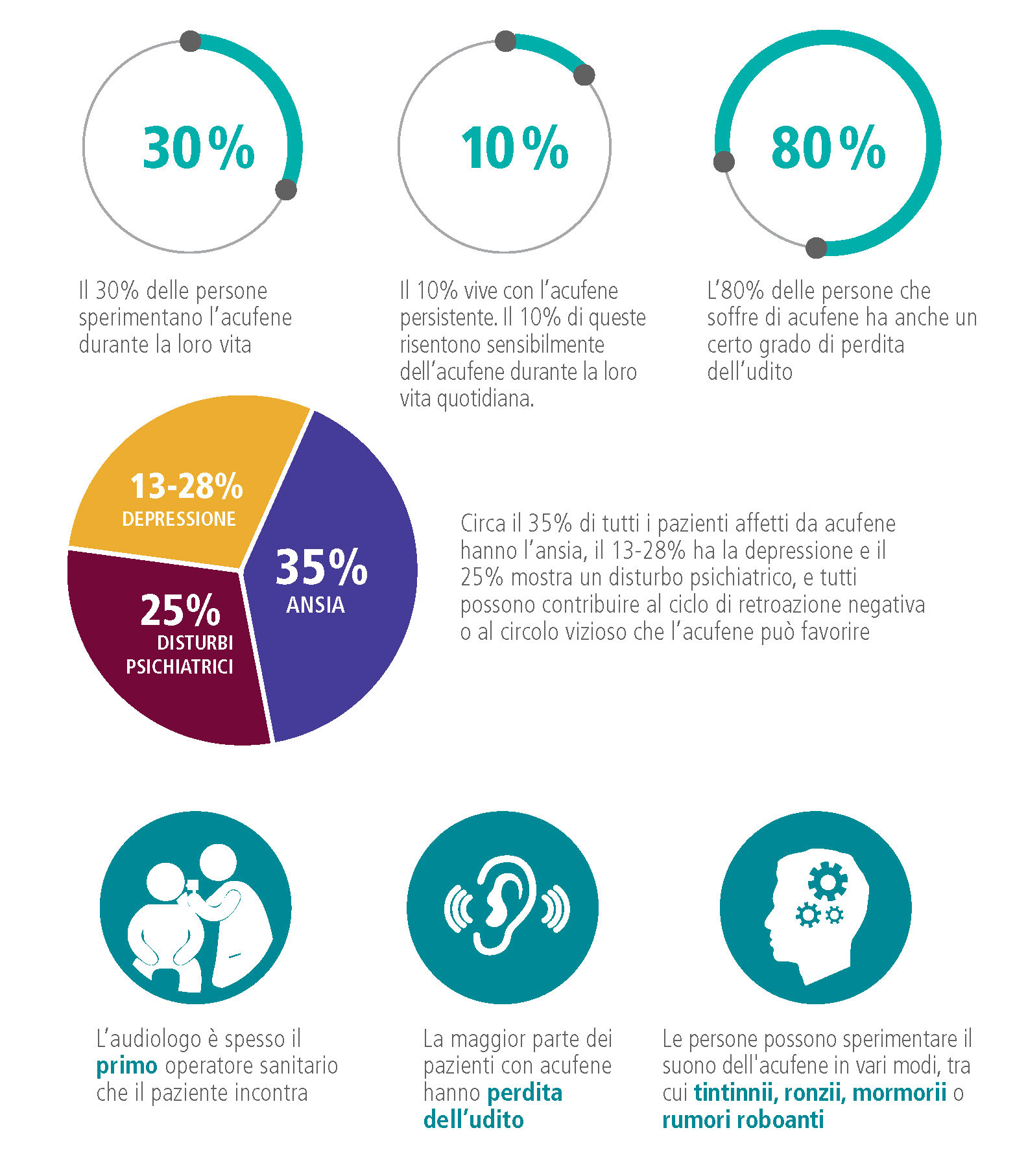 Ci sono molte ipotesi sulla causa dell’acufene, come quantificarlo e come trattarlo. Aiuta i tuoi pazienti a capire cosa è vero e cosa non lo è, imparando quali altri sintomi non legati all’udito spesso accompagnano l’acufene e come i pazienti vivono il disturbo.