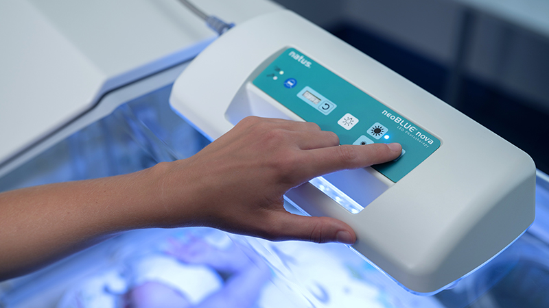 Natus Sensory neoBLUE nova is made for convenience in the nursery – to help you spend more time on patients and less time fiddling with equipment. You can use it with incubators, radiant warmers, or open bassinets and accommodate babies with different treatment needs. You can switch between the light alone, the light mounted on an arm and the light on a roll stand in minutes – with no need for tools. It’s lightweight and compact enough to not be in your way in small, crowded spaces. And the simple user interface with its easy-to-use buttons and pre-set treatment-level options saves valuable time. So you can concentrate on caring for patients and supporting their families.